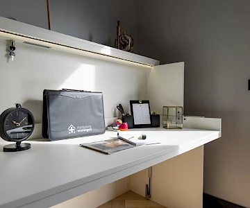 Deze luxe mantelzorgwoning Next Level is uitgerust met het Free@Home systeem van Busch-Jaeger. Een stukje huisautomatisering maakt het leven van zowel de mantelzorger als de mantelzorg behoevende comfortabeler, veiliger en duurzamer. Verlichting, verwarming, apparatuur van diverse merken en deurcommunicatie zijn eenvoudig te bedienen en zelfs op afstand. Alles kan geheel naar persoonlijke wens worden ingesteld. Zo kan de mantelzorg behoevende de deur open maken door middel van spraak en hoeft de mantelzorger zich geen zorgen te maken over of de kookplaat nog aanstaat door automatische uitschakeling van apparaten.